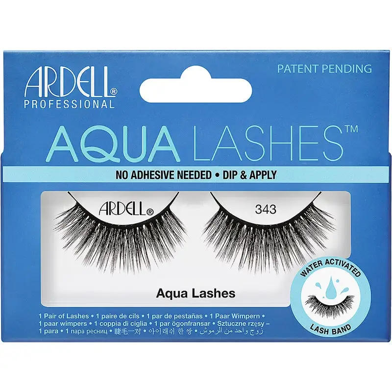 Aqua Lashes™ gir deg vakre vipper på noen sekunder … uten lim! Takket være et patentsøkt vippebånd som aktiveres med vann, trenger du ingen ekstra lim. Perfekt for nybegynnere eller når du har dårlig tid. Myke og fine avsmalnende fibre smelter sammen med dine egne vipper. Det svarte båndet gir en definerende eyelinereffekt. Velg blant ulike former, volumer og lengder som passer enhver anledning og smak. Ingen teip. Ingen lim. Ingen problem.