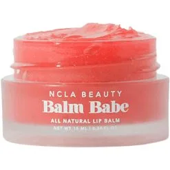 Balm Babe lip balm er laget med 100% naturlige, veganske og cruelty-free ingredienser, og etterlater leppene myke og hydrerte. Balm Babe lages med shea smør, kokos smør, avokado smør og kokos olje. Påfør et tynt lag Lip Balm på leppene så ofte som du ønsker i løpet av dagen. Bruk alene eller etter NCLA BEAUTY Sugar Sugar Lip Scrub for optimalt resultat. 10 ML